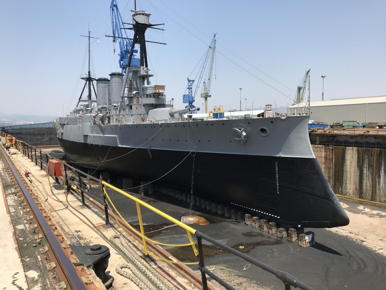 Τα Ναυτικά Χρονικά εξασφάλισαν φωτογραφίες του θωρηκτού Γ. Αβέρωφ, αμέσως μετά την ολοκλήρωση των εργασιών επάνω στη δεξαμενή των ναυπηγείων Σκαραμαγκά.