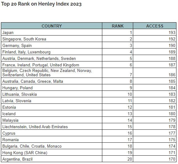Ο δείκτης Henley Passport αποκαλύπτει τις χώρες με τα ισχυρότερα διαβατήρια παγκοσμίως, με βάση βάσει δεδομένων από τη Διεθνή Ένωση Αεροπορικών Μεταφορών (IATA) και τον αριθμό των προορισμών που γίνονται δεκτά.