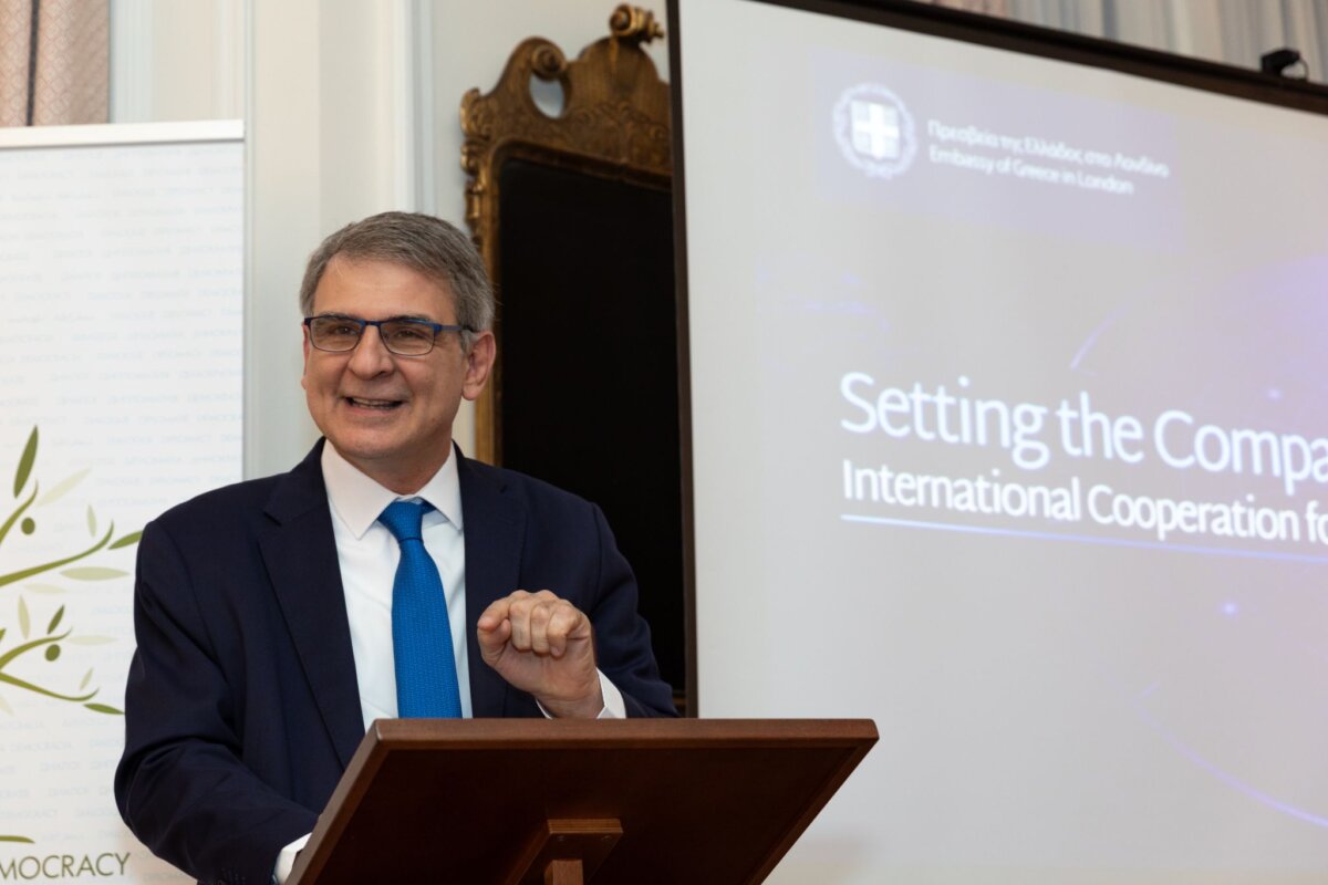 Ο πολυδιάστατος ρόλος της Ελλάδας -μιας χώρας με τον μεγαλύτερο εμπορικό στόλο στον κόσμο- στη θαλάσσια ασφάλεια, αναδείχθηκε μέσα από την ομιλία του πρέσβη της Ελλάδας στο Ηνωμένο Βασίλειο Γιάννη Τσαούση, σε εκδήλωση που διοργάνωσε η ελληνική πρεσβεία στο Λονδίνο, με θέμα: «Setting the Compass: International Cooperation for Maritime Security» (Χαράζοντας πορεία: Διεθνής συνεργασία για τη Θαλάσσια Ασφάλεια).