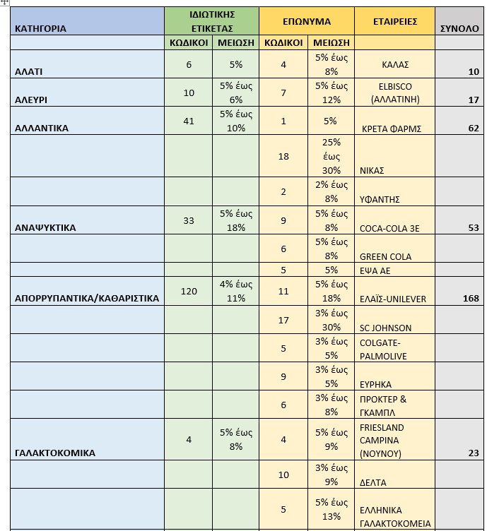 Σε αυτό το πλαίσιο, σήμερα ανακοινώνεται από τις αλυσίδες του λιανεμπορίου και τους προμηθευτές μεσοσταθμική μείωση 8% σε πάνω από 2.000 κωδικούςσημαντικών προϊόντων.