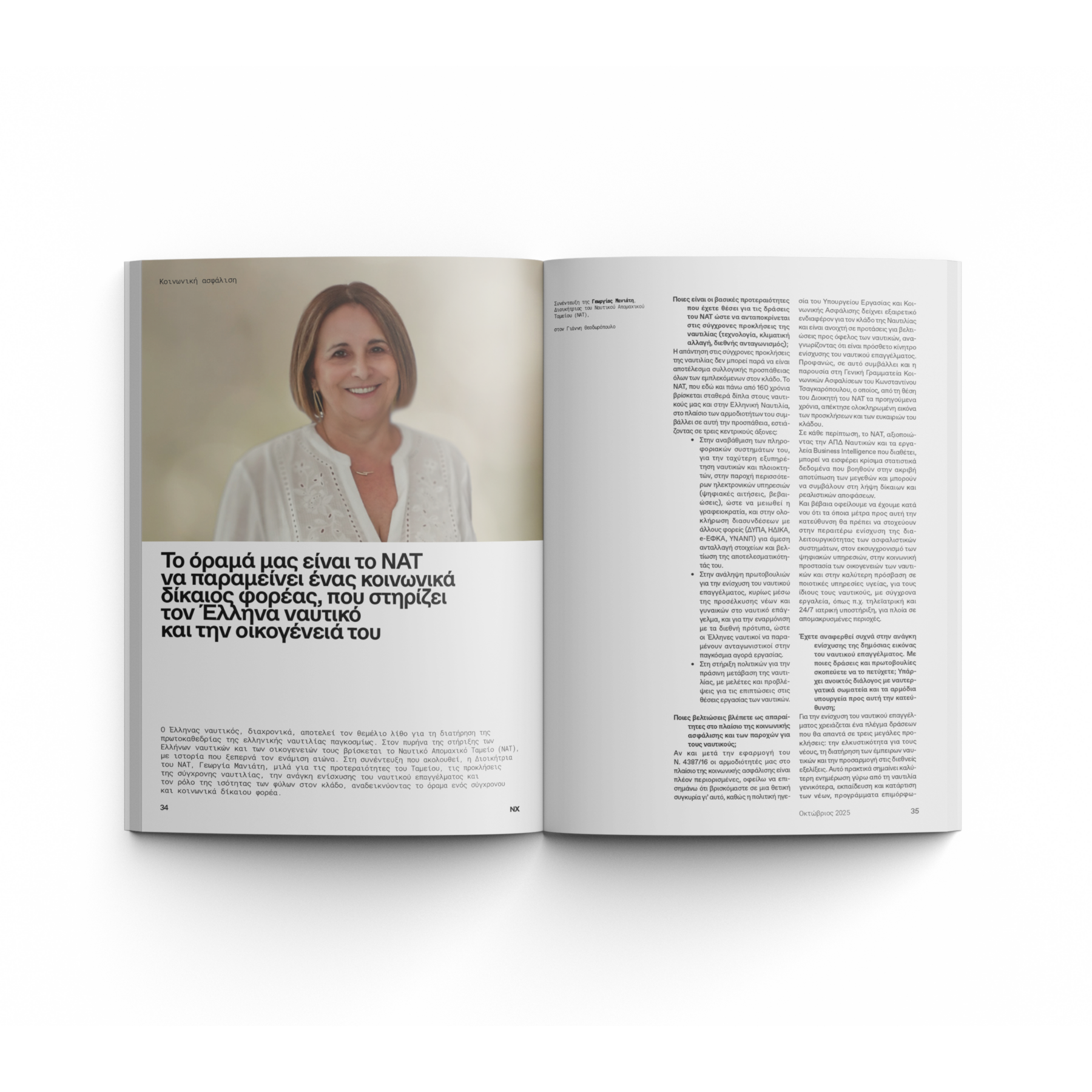 Το όραμά μας είναι το ΝΑΤ να παραμείνει ένας κοινωνικά δίκαιος φορέας, που στηρίζει τον Έλληνα ναυτικό και την οικογένειά του / της Γεωργίας Μανιάτη