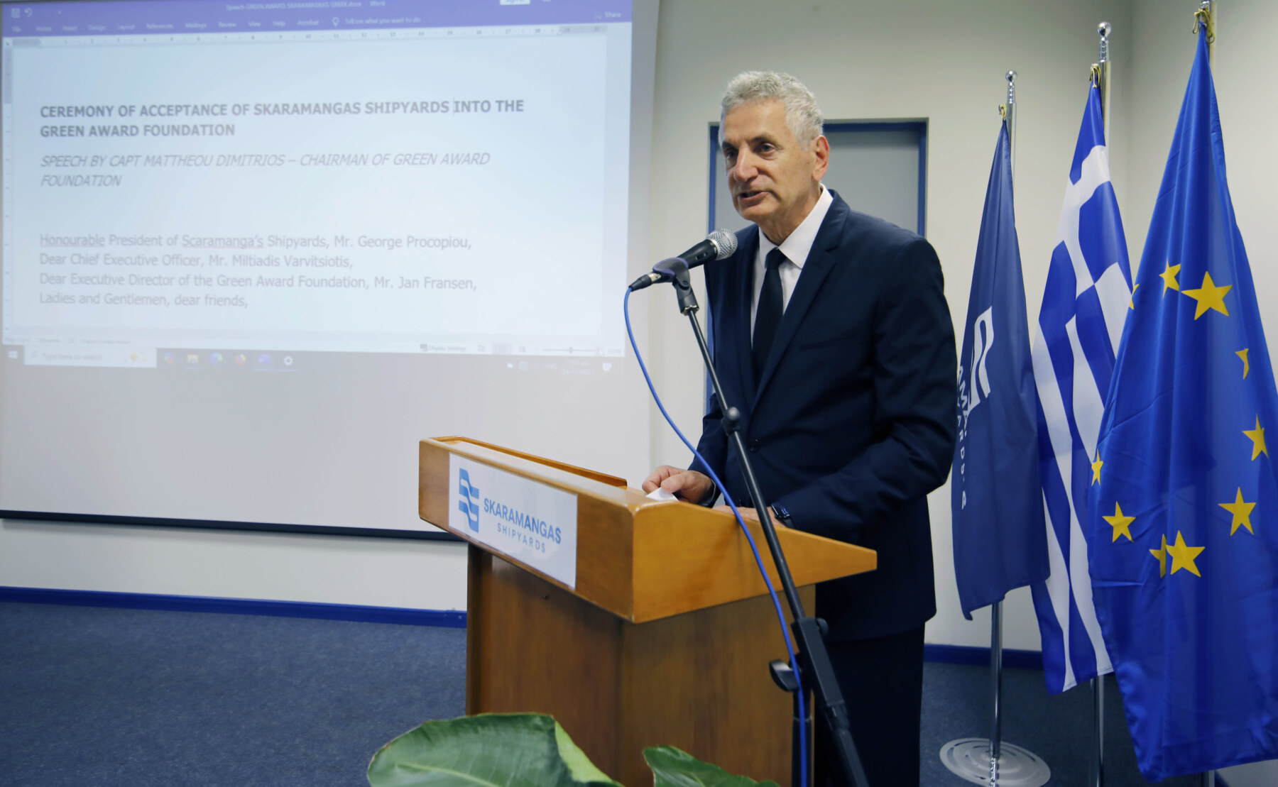 Με μακρά διεθνή εμπειρία στο ναυτιλιακό κλάδο και ειδικότερα στη ναυτιλιακή ασφάλεια, ποιότητα και περιβαλλοντική συμμόρφωση, ο Καπτ. Ματθαίου υπογράμμισε τον στρατηγικό ρόλο που διαδραματίζουν τα ναυπηγεία, με την τεχνογνωσία τους και τις επενδύσεις σε νέες «καθαρές» τεχνολογίες, στη βελτίωση της ζωής ενός πλοίου. Τόνισε ότι η συμμετοχή των Ναυπηγείων Σκαραμαγκά στο οικοσύστημα «αναβαθμίζει ουσιαστικά τις υπηρεσίες που παρέχονται σε πιστοποιημένα πλοία και ενισχύει τη βιωσιμότητα του Green Award παγκοσμίως».