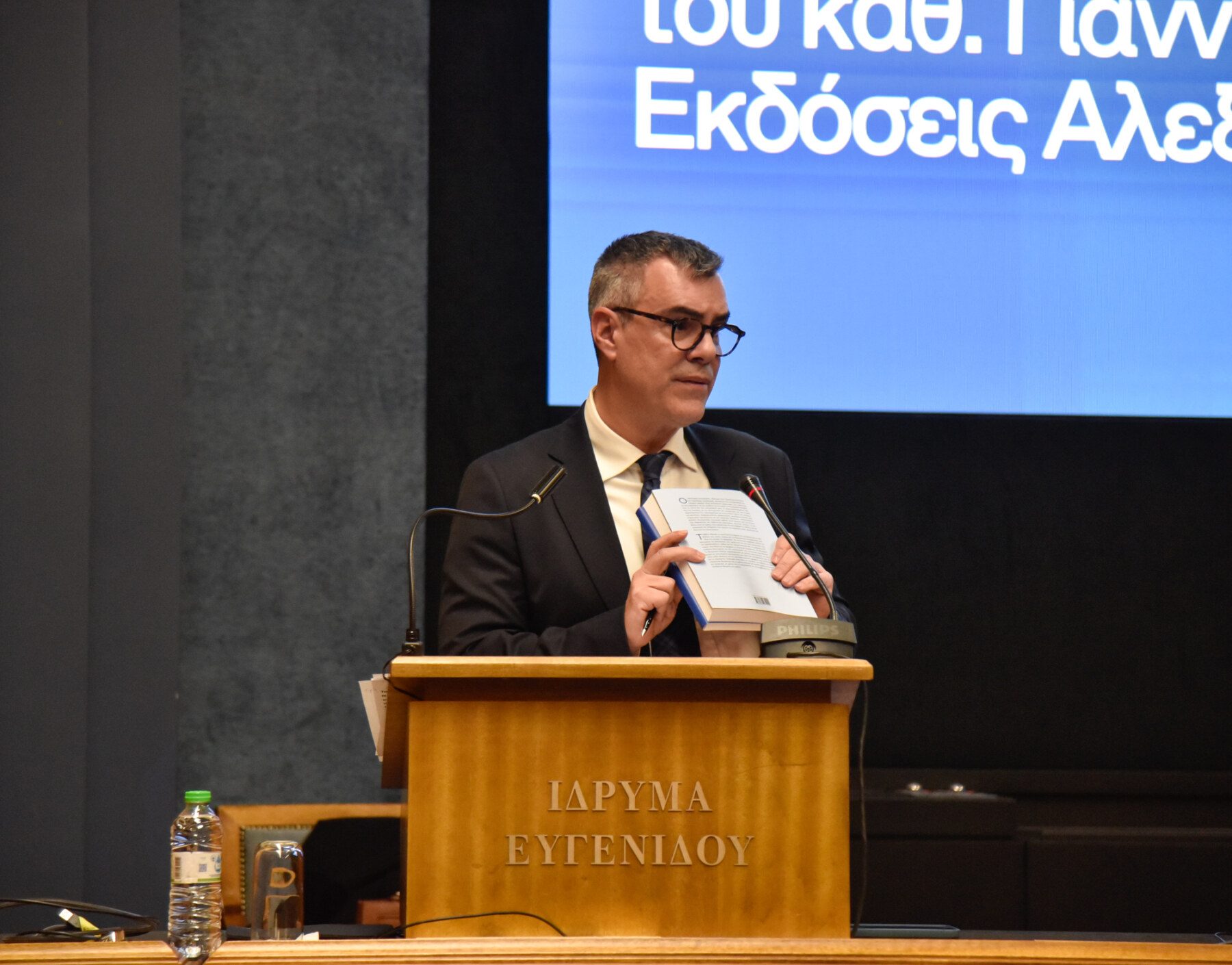 Η εκδήλωση εκκίνησε με έναν χαιρετισμό του καθ. Ιωάννη Γκόλια, Διοικητή του Ιδρύματος Ευγενίδου, ο οποίος αφού καλωσόρισε το κοινό στον χώρο του Ιδρύματος και συνεχάρη τον συγγραφέα, αναφέρθηκε στο μεγάλο στοίχημα της ελληνικής ναυτιλίας, υπογραμμίζοντας ότι: «Η ελληνική ναυτιλία δεν κατέκτησε την παγκόσμια ηγετική της θέση με πρακτικές τις οποίες υιοθέτησε από άλλους, αλλά δημιούργησε ένα δικό της μοντέλο διοίκησης, λήψης αποφάσεων και ευελιξίας, το οποίο είχε προσαρμοστεί στις ανάγκες του κλάδου. Σήμερα μπροστά στις βαθιές αλλαγές, που είναι πολλές και γρήγορες, και μπροστά στους ασύμμετρους κινδύνους των γεωπολιτικών εξελίξεων, το ζητούμενο δεν είναι το μοντέλο αυτό να καταργηθεί, αλλά να εξετάσουμε πως μπορεί να εξελιχθεί σε κάτι το οποίο θα είναι αποδοτικό για τη ναυτιλία. Η πρόκληση επομένως για τις ελληνικές ναυτιλιακές επιχειρήσεις είναι να διατηρήσουν την επιχειρηματική τους ταυτότητα, να διατηρήσουν την ευελιξία τους, ταυτόχρονα όμως να ενσωματώσουν σύγχρονες πρακτικές διοίκησης, που θα επιτρέψουν όχι απλά να ανταπεξέλθουν στις εξελίξεις αλλά να συνεχίσουν να τις διαμορφώνουν όπως έκαναν επί δεκαετίες τώρα».