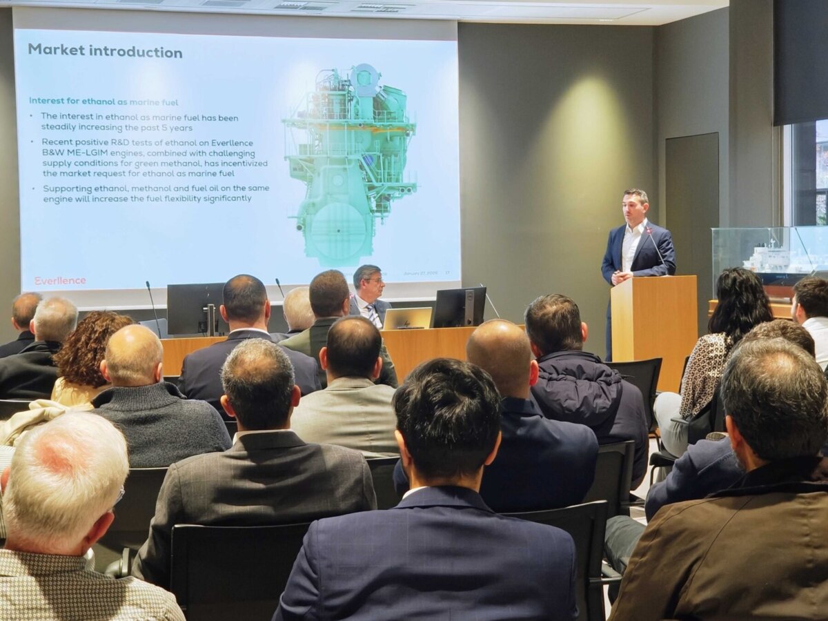 Επιπλέον παρουσιάστηκαν εξελίξεις στην ανάπτυξη μηχανών αμμωνίας. Υπενθυμίζεται ότι η Everllence παρουσίασε τον περασμένο Δεκέμβριο τη νέα γενιά δίχρονων κινητήρων αμμωνίας ME-LGIA. Παράλληλα, συζητήθηκαν οι δυνατότητες και οι λύσεις που προσφέρει η μετασκευή συμβατικών μηχανών σε μηχανές διπλού καυσίμου, ενώ πραγματοποιήθηκε και μια παρουσίαση των εμπειριών και των lessons-learned από τους χρήστες του δίχρονου κινητήρα B&W ME-GI της Everllence.