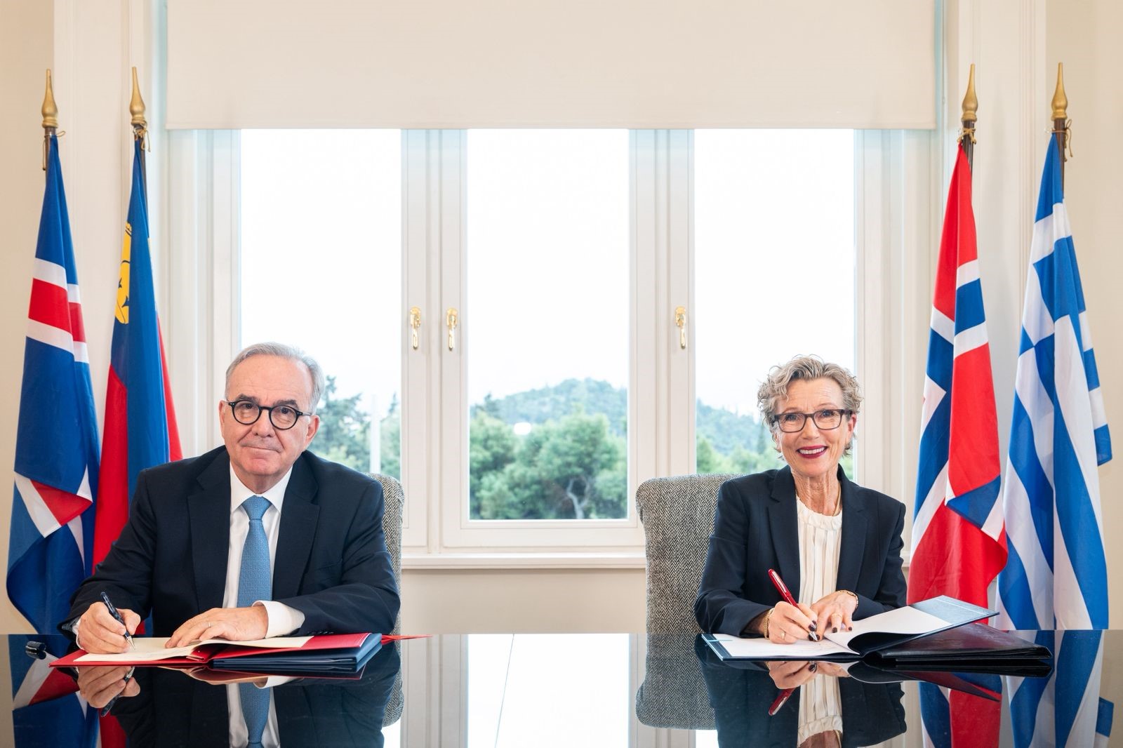 Τη συμφωνία υπέγραψαν στην Αθήνα η Πρέσβης της Νορβηγίας Harriet E. Berg και ο Αναπληρωτής Υπουργός Εθνικής Οικονομίας και Οικονομικών Νίκος Παπαθανάσης, σηματοδοτώντας τη συνέχιση μιας μακράς και παραγωγικής συνεργασίας μεταξύ των δύο χωρών.
