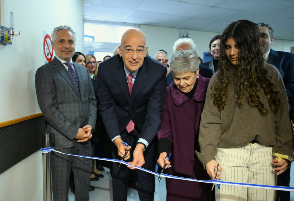 Η κοπή της κορδέλας πραγματοποιήθηκε από την κα Κατίγκω Αγγελάκου, σύζυγο του κ. Ευάγγελου Ελ. Αγγελάκου, και την εγγονή της, Κατίγκω Αναργ. Σκινίτη, μαζί με τον Υπουργό, κ. Δένδια.