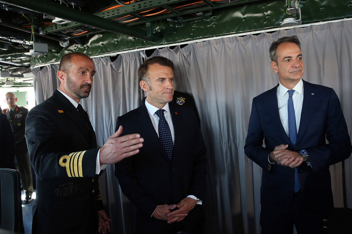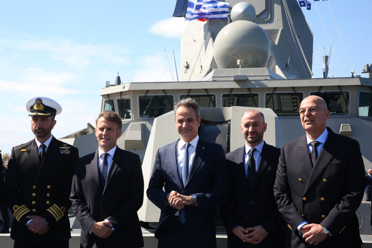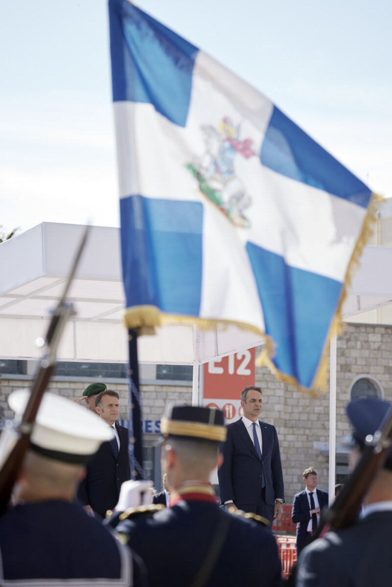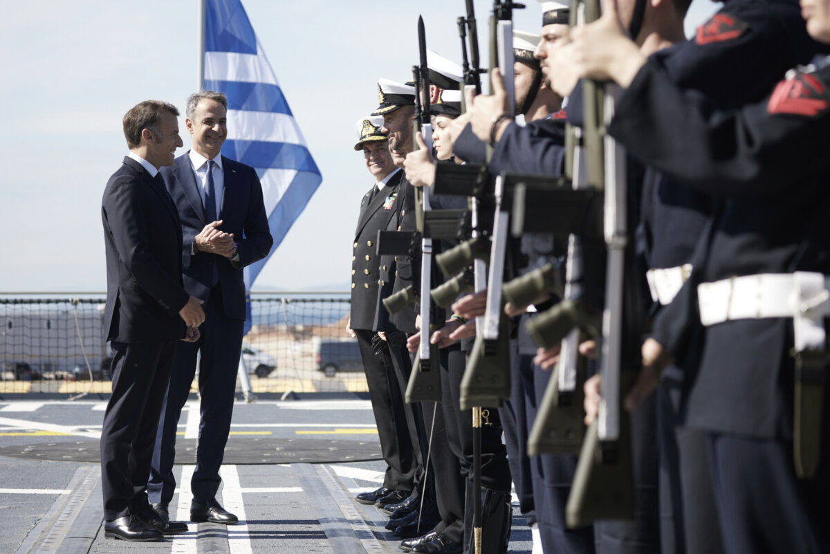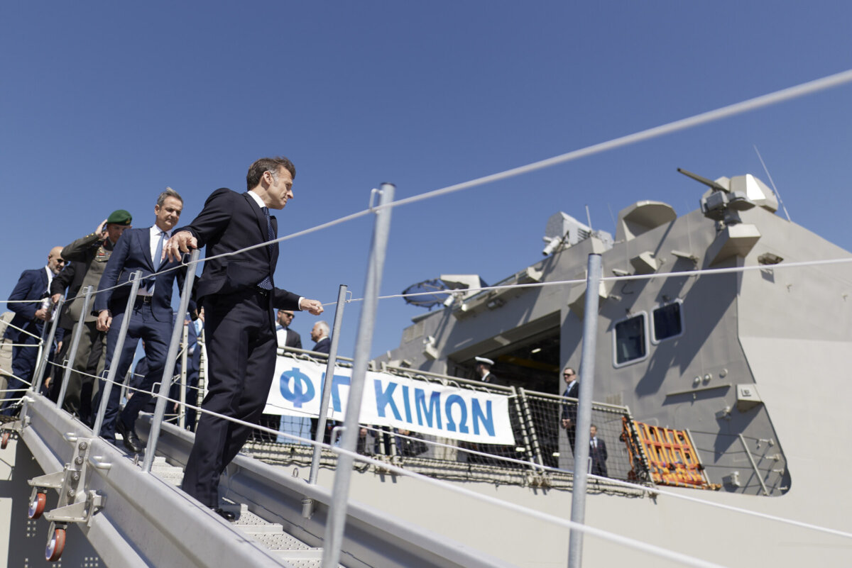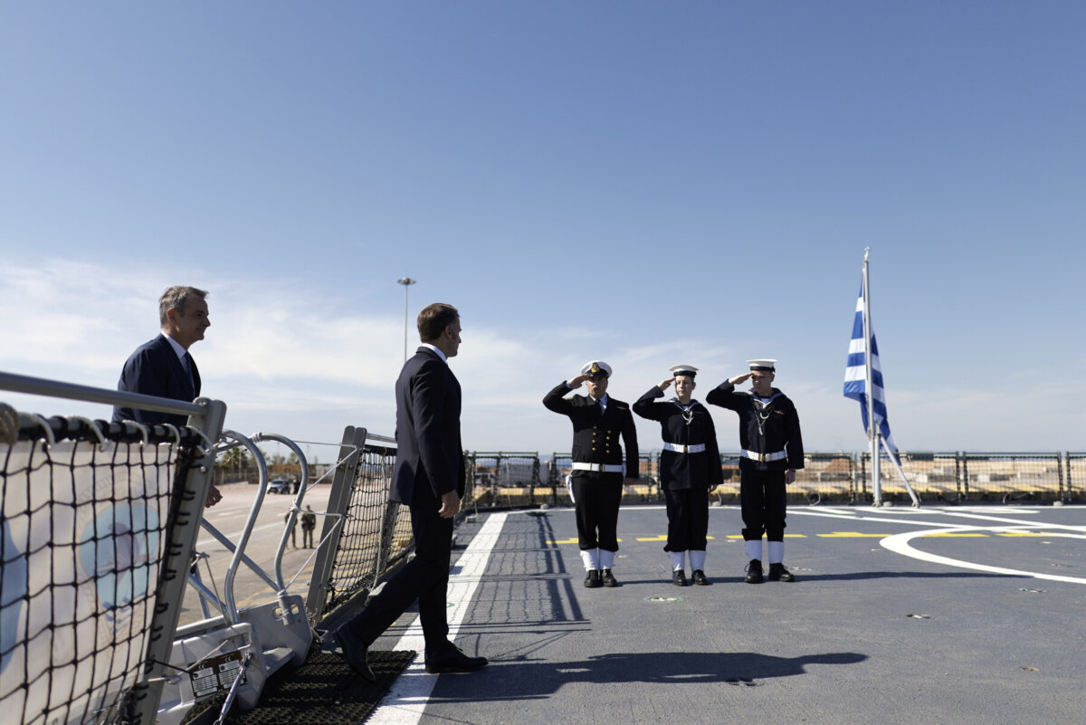 Ο πρωθυπουργός Κυριάκος Μητσοτάκης με τον Πρόεδρο της Γαλλίας Εμανουέλ Μακρόν έφθασαν νωρίτερα στην αποβάθρα 12 στο λιμάνι του Πειραιά προκειμένου να επισκεφθούν τη φρεγάτα «Κίμων».