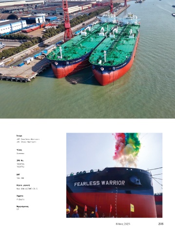 Όνομα «MT Fearless Warrior» «MT Stoic Warrior» Τύπος Suezmax ΙΜΟ Νο. 1028736 1028762 DWT 156.400 Κύρια μηχανή Man B&W 6G70ME-C9.5 Σημαία Λιβερία Νηογνώμονας LR Mάιος 2025 205