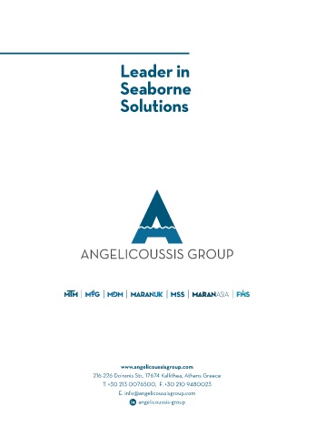 Leader in Seaborne Solutions www.angelicoussisgroup.com 216-226 Doiranis Str., 17674 Kallithea, Athens Greece T. +30 213 0076500, F. +30 210 9480023 E. info@angelicoussisgroup.com angelicoussis-group