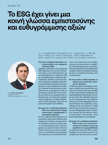 ESG είναι περισσότερο ζήτημα νης και ευθυγράμμισης αξιών. Πιστεύω
