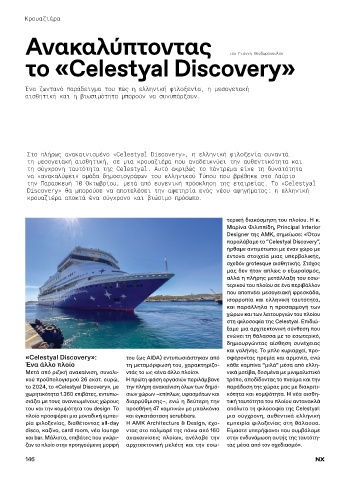 το 2024, το «Celestyal Discovery», με την πλήρη ανακαίνιση όλων των δημό- παράδοση της χώρας μας με διακριτι-