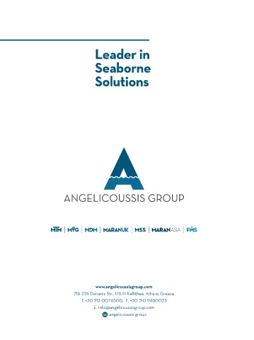 Leader in Seaborne Solutions www.angelicoussisgroup.com 216-226 Doiranis Str., 17674 Kallithea, Athens Greece T. +30 213 0076500, F. +30 210 9480023 E. info@angelicoussisgroup.com angelicoussis-group